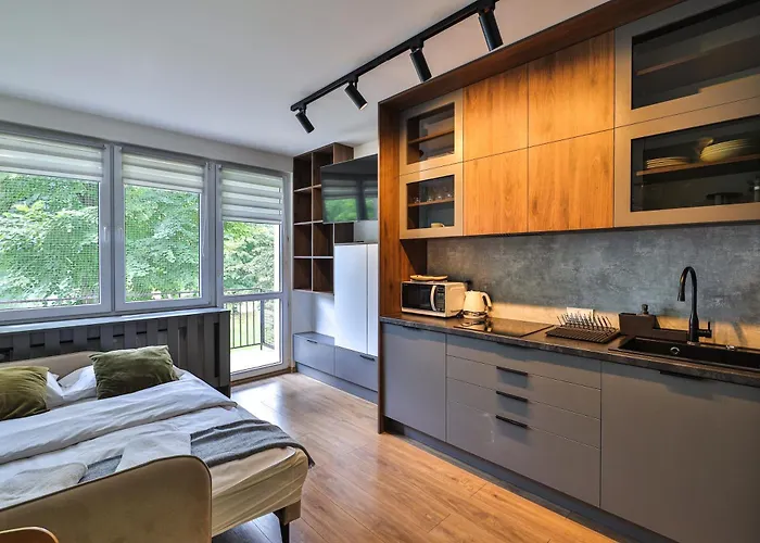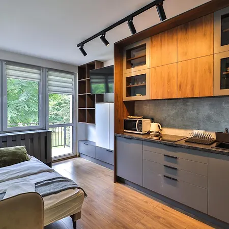 Deze accommodatie is biedt een complete keuken met alle benodigde keukengerei om maaltijden te bereiden. Het appartement is in de nabijheid van Wapowskiego 02 bushalte.